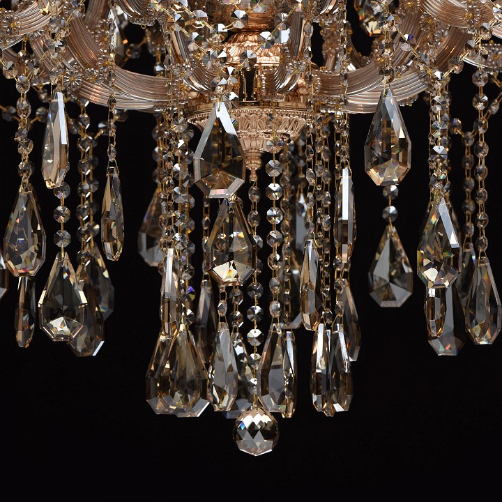 регулируется по высоте Классический парадный стиль, продуманные детали, благородные тона – все это в светильниках из коллекции «Одетта». Металлическое основание яркого золотого оттенка эффектно подчеркнуто источниками света в виде свеч и изящными рожками. На фоне драгоценных тонов прекрасно смотрятся хрустальные подвески цвета золотистого топаза. Стеклянный декор завершает композицию и придает ей дополнительное изящество.