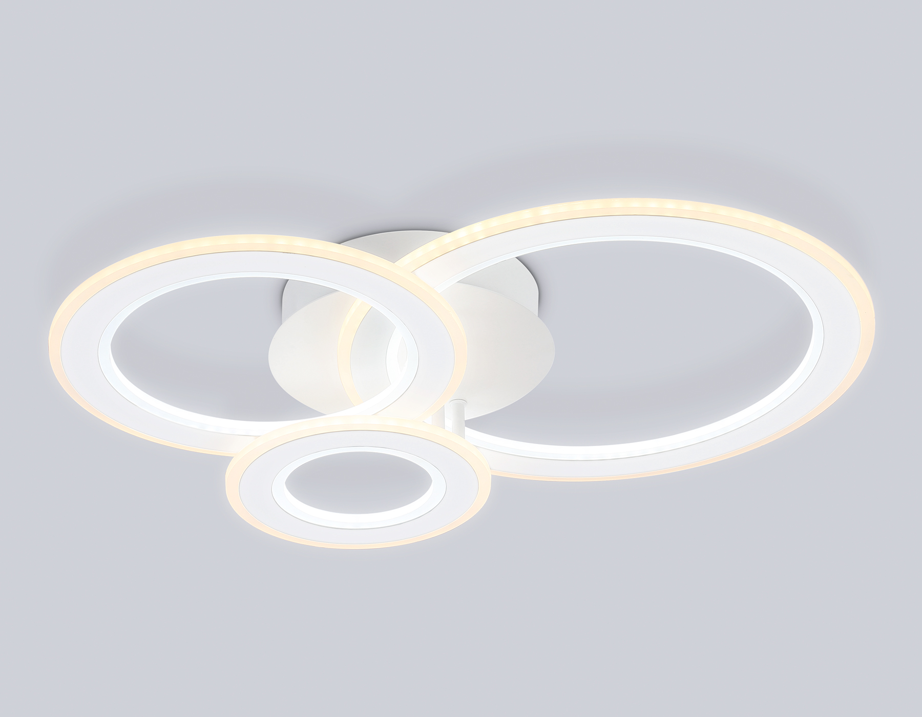 Потолочный светодиодный светильник из серии ACRYLICA, коллекция Original. Ультрасовременная модель FA861 выполнена в современном стиле Хай-тек. Светильник формы пересечения трех кругов, белого цвета, изготовлен из акрила и металлического корпуса. В конструкцию этого светильника уже встроены светодиоды, что исключает поиск или замену дополнительных ламп. С помощью радиоуправляемого пульта вы сможете регулировать цветовую температуру, яркость освещения и ночной режим. Модель FA861 подходит для натяжных потолков и будет прекрасным дополнением в гостиной, спальне или детской комнате.